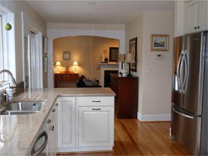 AFTER: FLooring, cabinets, appliances, wall, etc all changed -
